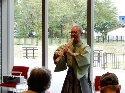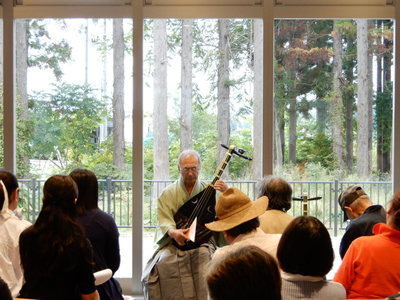 平尾鶴朋(かくほう)先生による薩摩琵琶の弾き語りと弘前藩に伝わる錦風流(きんぷうりゅう)尺八の演奏です。