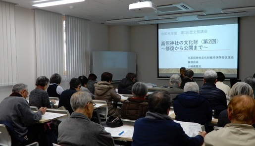 12月8日(日)昨年度に引き続き、元高照神社文化財維持保存会後援会事務局長の小嶋義憲氏をお迎えして「高照神社の文化財<第2回>~修復から公開まで~」について、ご講演いただきました。