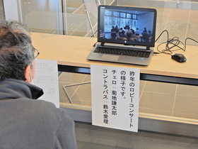 去る3月7日、日曜日に予定していたロビーコンサートを、新型コロナウイルスの感染防止のため、中止にさせていただきました。 演奏を快諾いただいた若き演奏家や、楽しみにしていた皆様には大変申し訳なく思います。 せめてもと思い、その当日、昨年の演奏の様子を映像で流しました。 映像を見ていたお客様の手には、中止となったロビーコンサートのチラシがありました。 願わくば、新型コロナウイルスが落ち着き、過去の映像ではなく、生の演奏が早く館内に響き渡りますことを祈っております。 季節の変わり目でもありますので、皆様ご自愛ください。