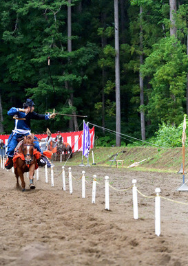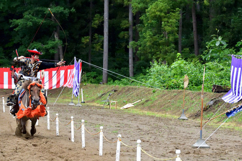 静寂な空気の中、射手と馬が心をひとつに的を射ると観客からは、雨模様の天候を吹き飛ばすかのような迫力に歓声があがっていました。
