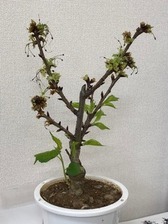 歴史館の「旭山桜」です。ひと足早く葉桜に。