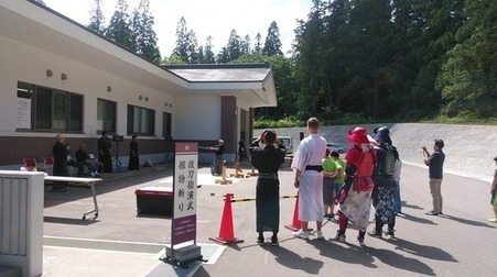 7月27日(土)、28日(日)は2日間とも晴天に恵まれ、高岡の森弘前藩歴史館では、第2回夏休みイベントが開催されました。 昨年に引き続き、外では抜刀術演武、据物斬り、中では映像・談話室で甲冑の着付けを行いました。今年は室内で写真撮影をした後、甲冑を着たまま外に出ていくお客様が何名もいらっしゃいました。