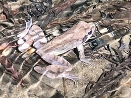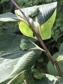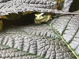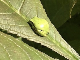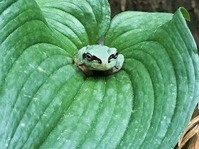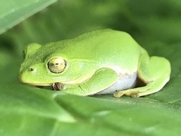 (写真は「ヤマ」アカガエルと「モリ」アオガエルです。どちらも歴史館の周りで見られます。)
