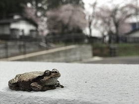 桜の季節も過ぎ、歴史館のまわりでも、色々な生き物に会える時期になりました。 今回は少し視点を変えて、馬場跡周辺で出会った生き物たちの中から、アマガエルたちを紹介したいと思います。