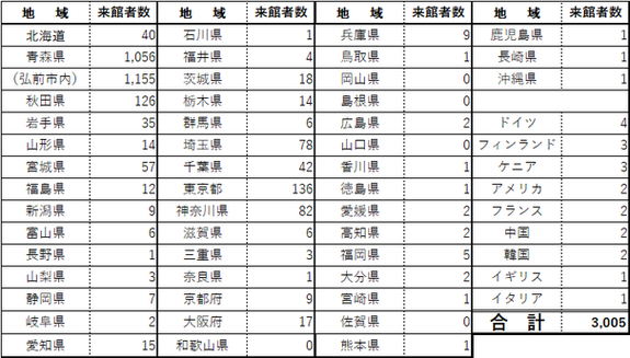 3千人を超えるお客様の御協力のもと弘前市内、青森県内の地元の方々や全国からもたくさんの方々に御来館いただき、職員一同、大変嬉しく思っております。