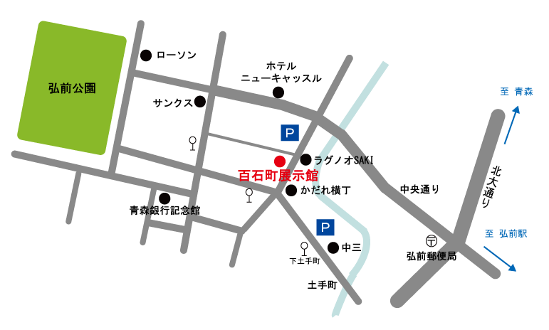 弘前市内連絡バス「弘前バスターミナル」下車 徒歩15分